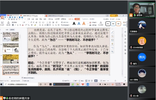 俞秀玲副教授主讲的《国学经典导论》,200余名学生及部分老师线上观摩,活动由哲社炸金花app