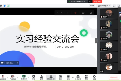 组织2019级、2020级参加专业实习的学生们召开线上实习交流会,会议由炸金花app