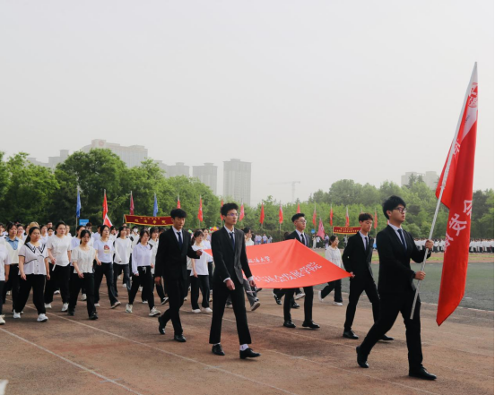 代表队正迎面走来,这群青年蕴含着蓬勃的生机,凝聚着不竭的活力。你且听“勤学力行,明理爱智,哲社骄子,雄心壮志”响彻整个运动场,他们昂首阔步即是坚定的信念,他们笑容洋溢即是灿烂的心态,尽显青年学子的风华正茂。