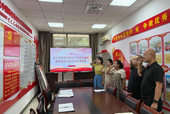 随后,李彧嘉通报了违规吃喝典型案例,并以“身边事”开展警示教育,警醒党员严守纪律法律底线。警示教育活动后,李彧嘉以《深入学习贯彻中央八项规定精神 铸牢高校行政工作纪律防线》为题讲授专题党课,以理论结合实际的方式,深化党员对全面从严治党的认识。