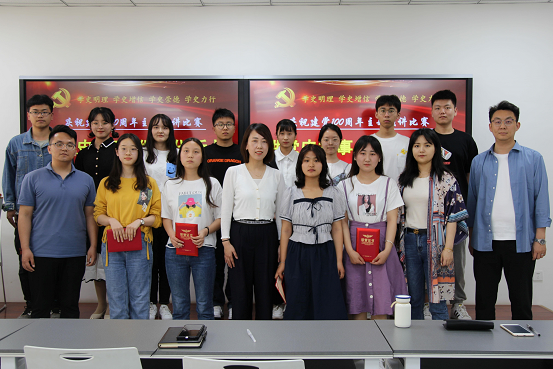 各位参赛同学意气风发、激情饱满,娓娓道来了建党百年来的艰苦奋斗历程。经过评委老师的打分,最终评选出一等奖两名、二等奖三名、三等奖四名。