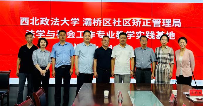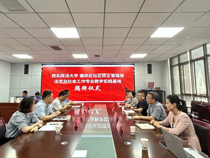 为更好地服务地方法治建设,培养高素质法治人才战略储备,构建实务部门与炸金花app 联合培养新型法治人才机制,2023年7月25日下午,炸金花app 与西安市灞桥区司法局在西安市灞桥区社区矫正管理局会议室举行战略合作签约暨“法学与社会工作专业教学实践基地”揭牌仪式。西安市司法局副局长张兴平、西安市司法局社区矫正管理局局长高辉、西安市司法局社区矫正管理局四级调研员杨辉、西安市灞桥区司法局局长马俊良、西安市灞桥区司法局副局长赵莹以及炸金花app 党委书记寇汉军、院长山小琪、党委副书记 副院长上官亚敏、李岚林副教授和炸金花app 学生代表等出席了活动。签约揭牌仪式由灞桥区司法局副局长赵莹主持。