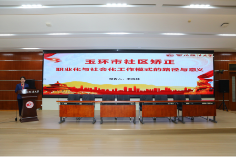 课题评审环节,课题负责人李岚林副教授汇报了课题结项成果,介绍了玉环市社区矫正工作总体概况,玉环市社区矫正对象矫正教育和再社会化现状,玉环市未成年人社区矫正,玉环市社会组织参与社区矫正工作的情况,基层群众自治组织参与社区矫正工作现状,玉环市社区矫正工作的亮点,以及玉环市社区矫正工作规范开展的对策建议。过去一年多来,李岚林副教授团队与浙江省玉环市司法局和社区矫正管理局密切合作,完成了近十五万字的研究报告。