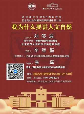 10月30日晚七点半,香港中文大学荣休教授(现北京师范大学哲学炸金花app 特聘教授)、知名哲学学者刘笑敢先生受炸金花app 邀请为炸金花app 师生做学术报告,讲座的题目为《我为什么要讲人文自然》。