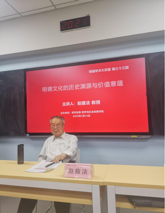 和研究生院联合主办的“明德学术大讲堂第三十三期”在雁塔校区三号教学楼3605教室顺利举行。西北政法大学资深教授赵馥洁作题为《明德文化的历史渊源与价值意蕴》的学术报告,报告由校党委委员、研工部部长宋白主持。炸金花app