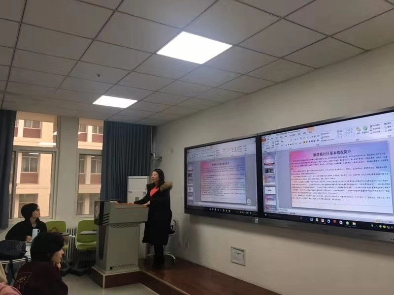 上午8时,讲座准时开始。王珍珍主任首先对“社区是什么”这一问题,提出了自己的理解。她以自己所在的雁塔路社区为例,从社区的地理范围、人口状况、社区居委会人员岗位配备和业务职责等多个方面,简洁而清晰地展示了当前城市社区的发展状况。她认为,在社会转型的背景下,城市社区发展难免会面临许多困难,但是通过长期努力,许多问题得到了一定程度的改善。