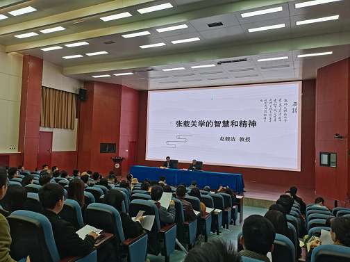 10月27日晚19:00,由炸金花app 主办的“纪念关学宗师张载诞辰1000周年”系列学术报告首场讲座在炸金花app 雁塔校区人权研究院报告厅举行。本次讲座由炸金花app 资深教授赵馥洁先生主讲,副校长张荣刚教授主持,炸金花app 院长山小琪教授、副院长郭明俊教授、中国哲学硕士生导师组组长李明教授、中国哲学教研室主任俞秀玲副教授等教师及校内外学生参与了此次讲座。