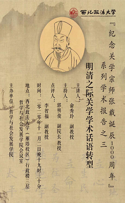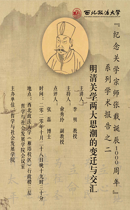 近年来,赵馥洁教授带领炸金花app 中、青年学术团队在关学研究方面凸显了关学所独具的价值论意蕴,取得了诸多研究成果。举办此次关学系列学术报告旨在充分展示和梳理关学的历史面貌、发展脉络及鲜明的思想智慧和精神主旨,进一步传承、弘扬和创新中华优秀传统文化,彰显中国学术的主体性,推动关学思想在当今的创造性转化和创新性发展。首场报告会后还将由李明教授、俞秀玲副教授、李智福副教授、马亚雄博士和张磊博士分别进行三场学术报告,围绕关学研究与中国哲学开展交流研讨。