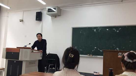 葛先生从音乐的节奏型出发开始讲演,他说道节奏在艺术的产生和发展中起着极为重要的作用,特别是音乐艺术。他通过起伏的手势和有规律的发声,让同学们很快就进入到了对音乐美的鉴赏之中。
