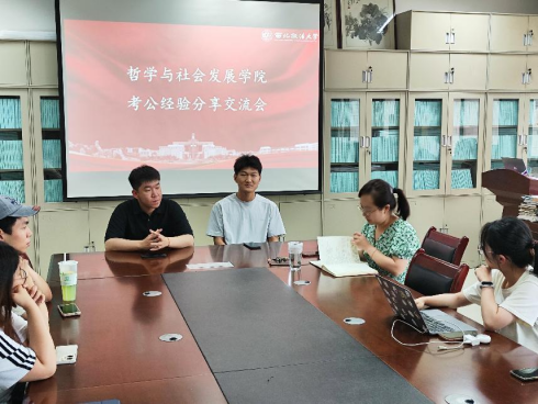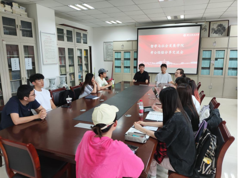 在2号教学楼209资料室举办考公经验分享交流会。本次交流会特邀成功上岸山东省泰安监狱的22级社会工作专业硕士李晨阳以及成功上岸山西省运城市选调生的22级社会工作专业硕士王道滢分享考公经验。团委书记慕婧主持会议。