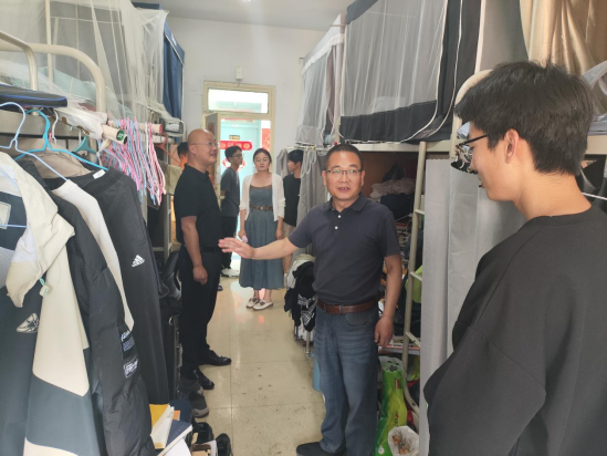 为进一步强化学生宿舍的安全管理,增强学生的安全意识,营造文明、整洁、舒适的宿舍环境,深入推动安全校园建设,5月20日中午,炸金花app 党委书记寇汉军、党委副书记杨军和辅导员武雯梅一行深入学生宿舍开展走访工作。
