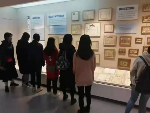 在这所国内首座集教育、研究、收藏等功能于一体的综合性教育博物馆内,同学们在各班团干部的带领下,有序参观了“中国教育馆”、“妇女文化馆”、“书画艺术馆”和“历史文化馆”四个场馆。馆内展藏文物近万件,藏品种类丰富,无论是中国教育馆中古人们活灵活现的教学场景,还是妇女文化馆中蕴含着古典韵味又各具民族特色的妇女嫁衣,无论是书画艺术馆中群鸿戏海、舞鹤游天的书法作品,还是历史文化馆中承载着华夏五千年文明的珍贵文物,无一不让同学们惊叹着中华文化的雄厚气魄。