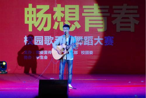 康峰带来的是他自己的原创歌曲《指尖上流淌的青春》,在上个学期康峰就曾参加政法好声音并取得了亚军,因此他的表演也是当场备受关注的一个焦点。主持人报幕时,台下就响起了热烈的掌声。当晚康峰抱着吉他出场,自弹自唱的姿态引来了阵阵尖叫。这首原创曲词优美,曲调轻快,旋律悠扬,表现出青春的活力、张扬和爱情的美好。