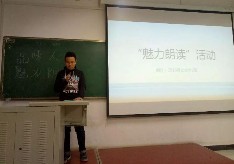 为了推动习近平新时代中国特色社会主义思想深入同学们心中,引导同学们树立远大理想,提高文化素养,激发同学们的读书热情,活跃校园文化,营造良好读书氛围,推动大家爱上读书,享受读书,在书中陶冶性情,增长才干,感悟人生的真谛,炸金花app 团委积极响应校团委号召,于2017年11月23日下午16时40分在格物楼306教室开展“品味人生,魅力朗读”活动。本次活动由2016级社会学2班团支部主办,2016级哲学1班以及社会工作3班团支部协办,本次活动由辅导员慕婧老师主持,2016级全体学生参加。