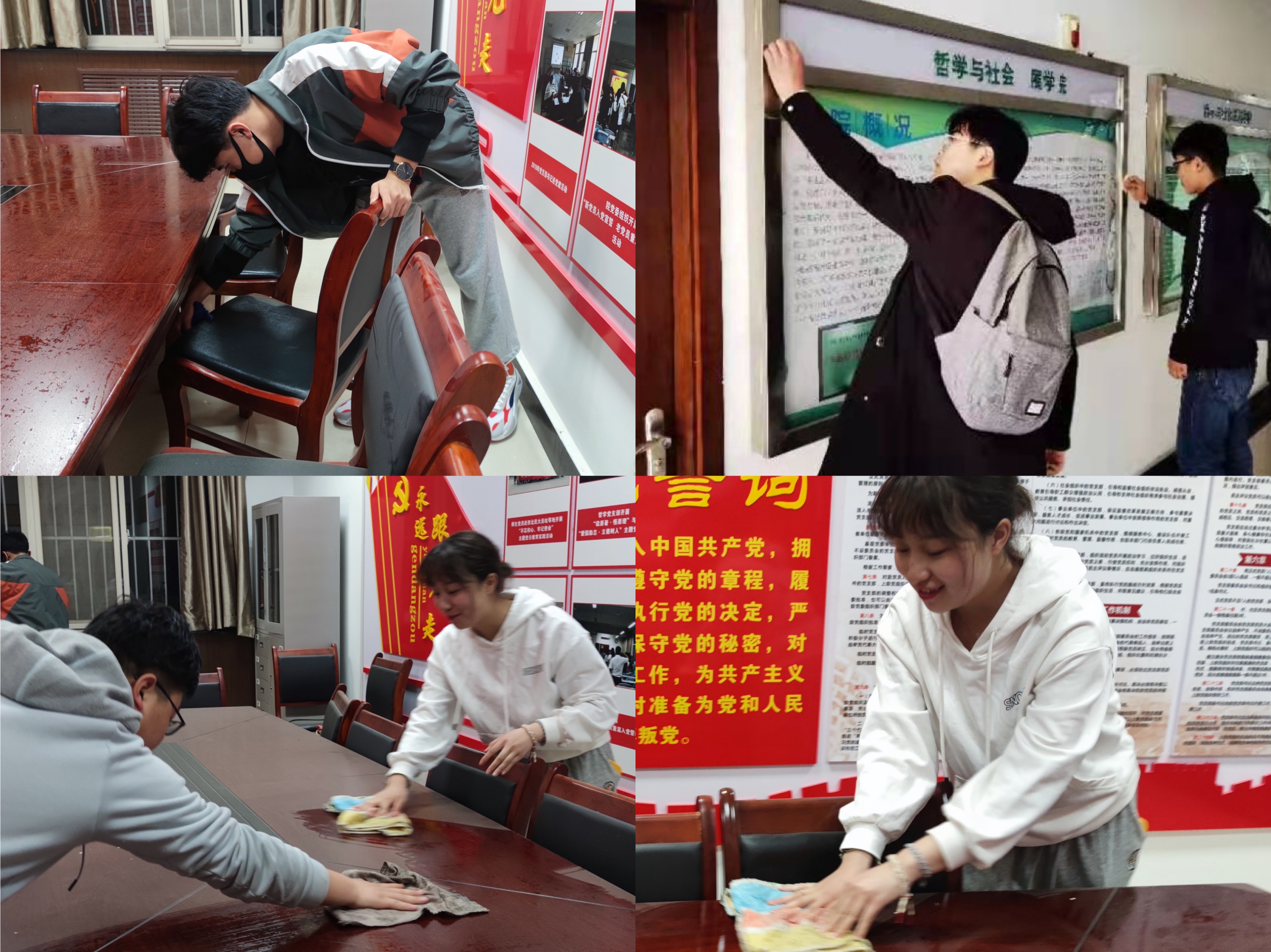 卫生清洁 劳动树新风,志愿我先行。2018级和2019级同学积极响应学雷锋志愿服务活动号召,自发组织志愿者清扫清洁炸金花app 党员活动室、会议室、宣传橱窗等公共设施和区域。