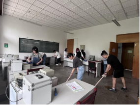开展爱国卫生运动号召,大家一同打扫教室,体会在劳动中收获快乐,用双手共建健康美丽的宜居校园。