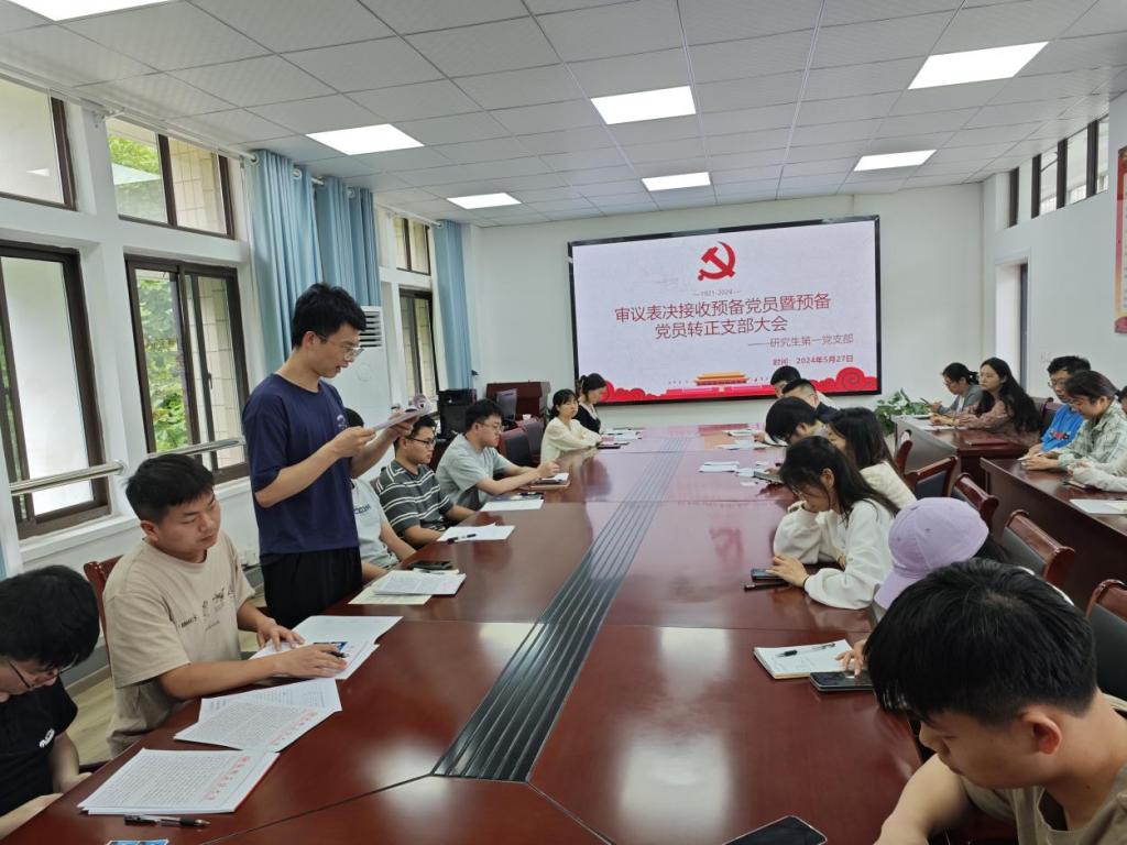 研究生第一党支部于2024年5月27日在能源楼325会议室举办了审议表决接收预备党员暨预备党员转正支部大会。会议由研究生第一党支部书记李玲主持,全体正式党员、预备党员以及拟预备的发展对象参加。