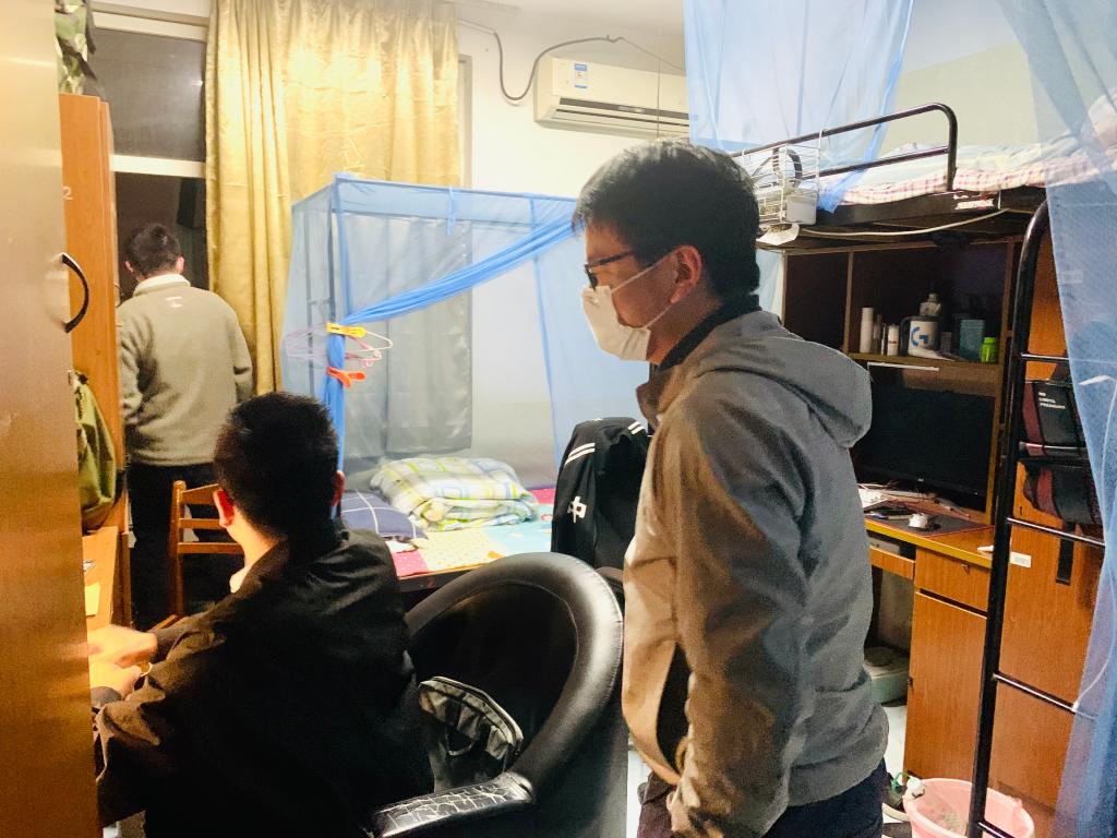 走访中,深入每一间研究生宿舍,认真查看了同学们的住宿环境、生活设施、清洁卫生及用电安全等情况,提醒大家保持寝室环境整洁卫生,做好消毒通风记录,遵守炸金花App