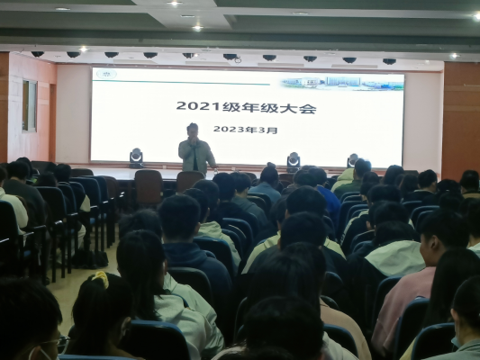 于佳山校区大学生活动中心召开了2021级春季学期年级大会。2021级全体学生参加了本次会议,会议由辅导员黄乐远主持。