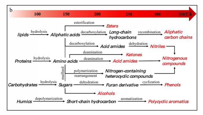 (反应不同阶段有机物的潜在转化途径)