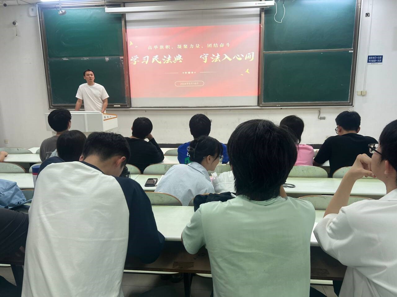我们每天都在与民法典打交道,从个人到家庭再到社会,民法典都在为我们的生活保驾护航。班会上,班长为同学们介绍了民法典的基本内容和重要条款,重点介绍了民法典如何守护我们的一生。班主任结合生动的案例,让学生们更加深入地了解民法典的实际应用。此外,班会还组织了互动环节,让学生们通过讨论、答题等方式加深对民法典的理解和掌握。
