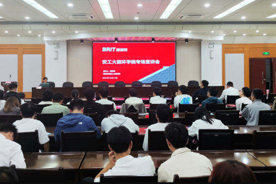 党委书记谢文平致答谢词,院长钱付平宣读了获奖学生名单,获奖学生代表环223班冯倩倩发表获奖感言。与会领导嘉宾为获奖学生颁发奖学金证书并合影留念。徐智明董事长为与会师生带来了一场题为“助力国家双碳目标实现·致力工业绿色热能发展”的精彩报告。报告会后博瑞特公司还举行了校园专场招聘宣讲会,近30名2025届毕业生现场投递了求职简历,表达了就业意向。