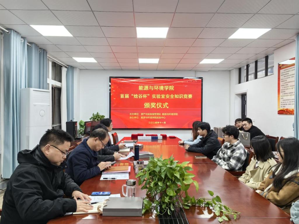 隆重举行了首届“焓谷杯”实验室安全知识竞赛的颁奖仪式。院党委书记谢文平、党委副书记、院长钱付平、副院长卫军帅、副院长楚化强、实验室主任王双、副主任殷国霞以及来自安徽焓谷工程技术有限公司绿色制造部的部长邵晓骐共同出席,全体获奖同学也受邀参加了此次颁奖仪式。颁奖仪式由楚化强主持。