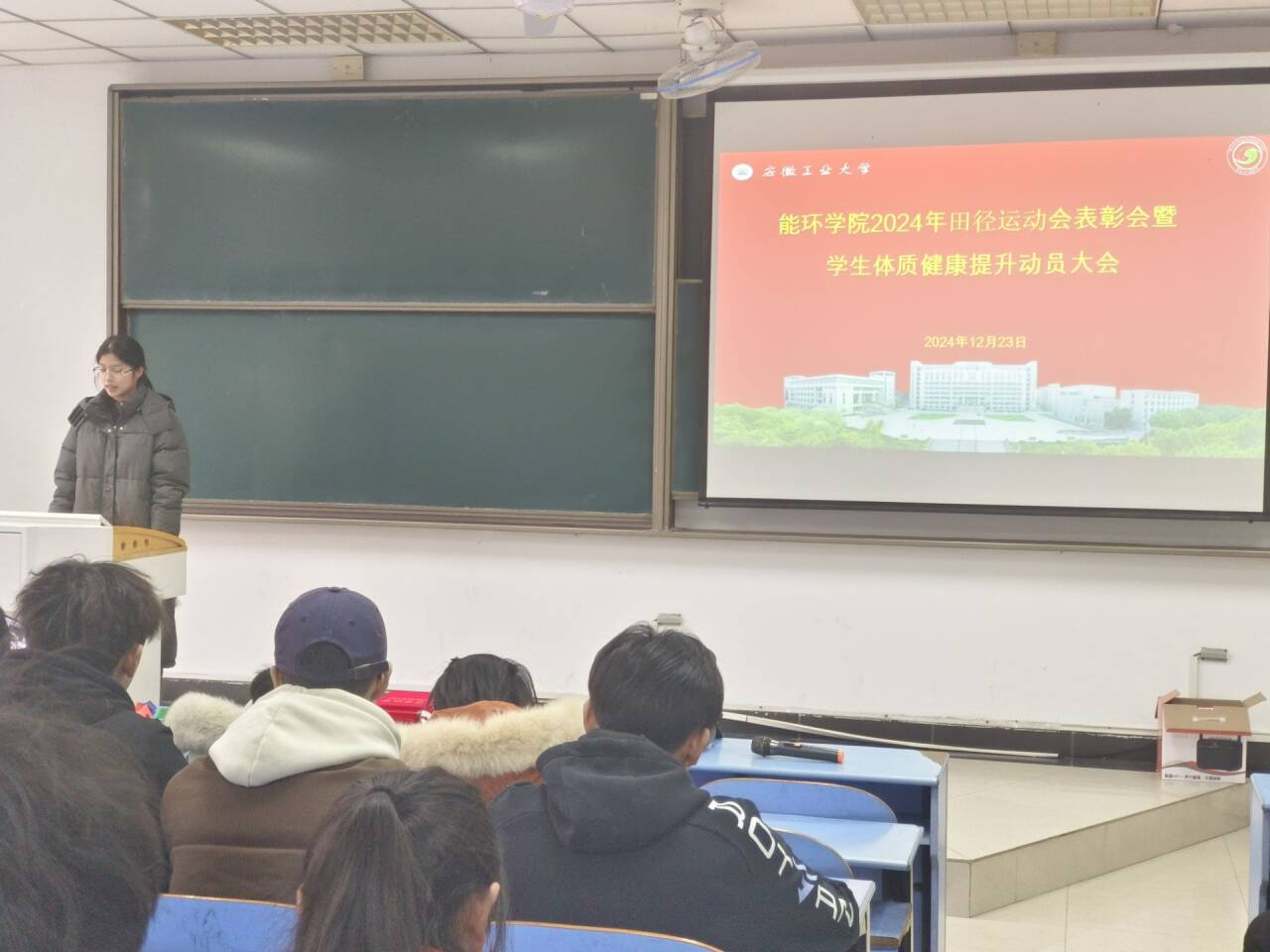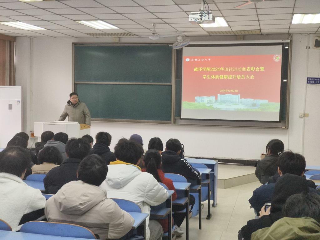 于12月23日在教三北119召开2024年田径运动会表彰会暨学生体质健康提升动员大会。院党委副书记、副院长卫军帅、各班级班长、团支书、体育委员、学习委员、运动员代表、全体辅导员出席会议,会议由院团委书记沈厚发主持。