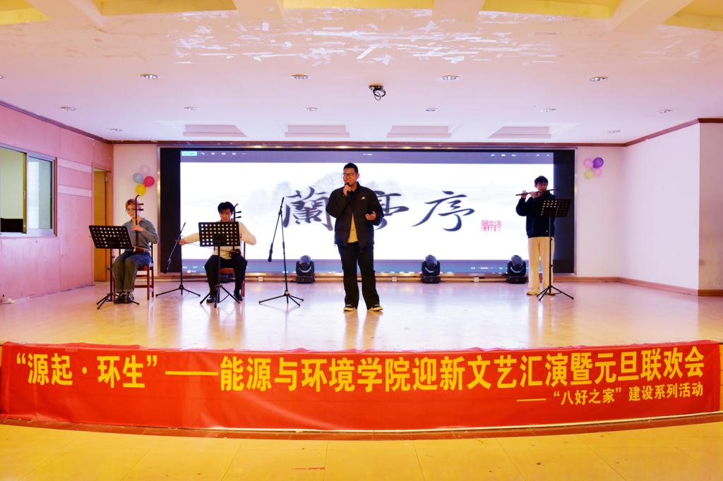联欢会上,同学们奉献了用心精彩的演绎,节目涉及说唱、乐器演奏、舞台剧、舞蹈和合唱等多种形式。一曲《兰亭序》让同学们感受到传统乐器的无限魅力,舞台剧《满江红》展现了新时代青年对爱党爱国的深刻理解,华尔兹和探戈的舞蹈演绎点燃了全场热烈的气氛,最后《炸金花App
