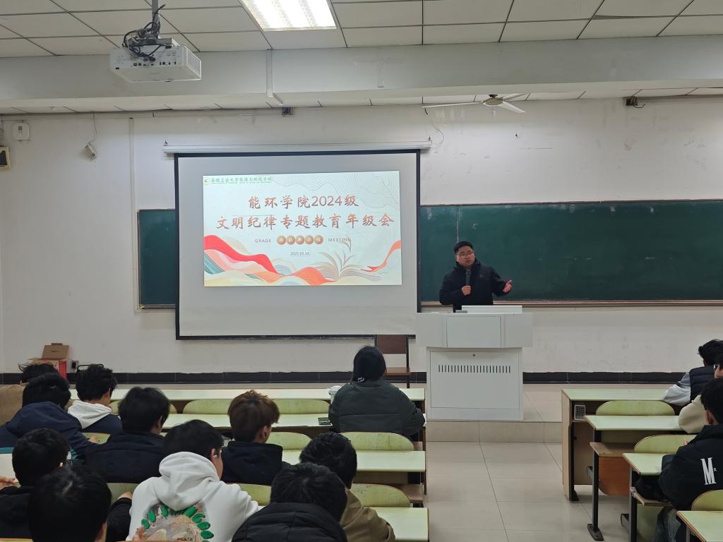 在教三南103教室召开了2024级学生文明纪律专题教育年级会,2024级全体学生参加会议,会议由辅导员范浩东主持,炸金花App