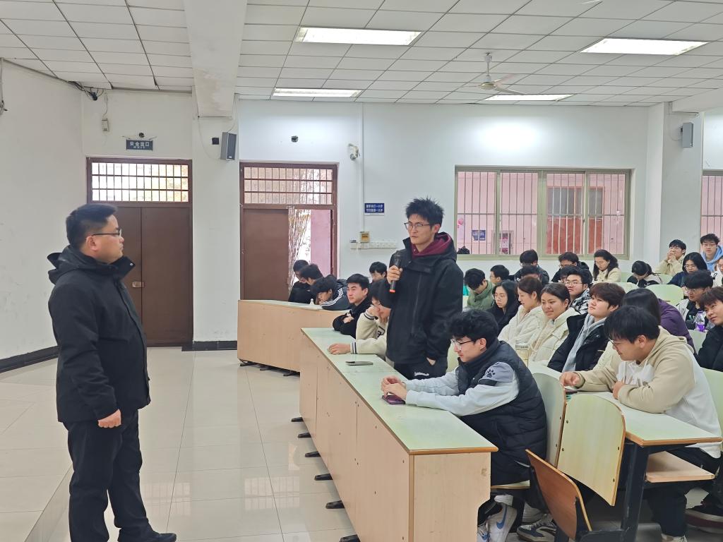 学生行为准则》。他详细解读了准则中的各项要求,并结合实际生活场景,向同学们阐述了如何在学习、生活和社交中践行文明行为、遵守纪律规范。卫军帅强调,作为新时代大学生,同学们要时刻以高标准要求自己,做到言行一致、表里如一,努力成为德才兼备的优秀人才。