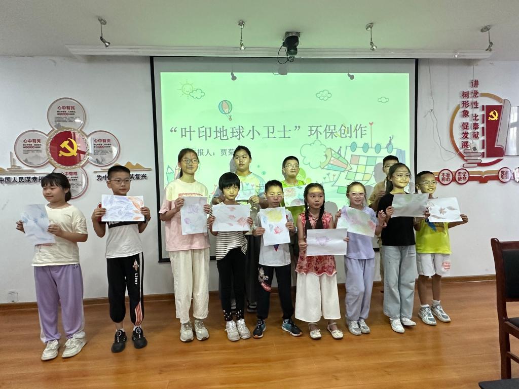 随着最后一片树叶拓印作品的完成,孩子们高举着自己的作品合影留念,灿烂的笑容与五彩的树叶相映成趣。一片片拓印树叶仿佛跳动的绿色音符,奏响着环保的青春乐章。队长贾菊韩在活动总结中说到,这些充满童真的作品不仅展现了孩子们的艺术天赋,更让队员们看到了环保理念在新生代心中逐渐生根发芽。该实践团队表示,他们将继续开展各类环保实践活动,将环保理念传递给更多的人,为建设美丽中国贡献青春力量。