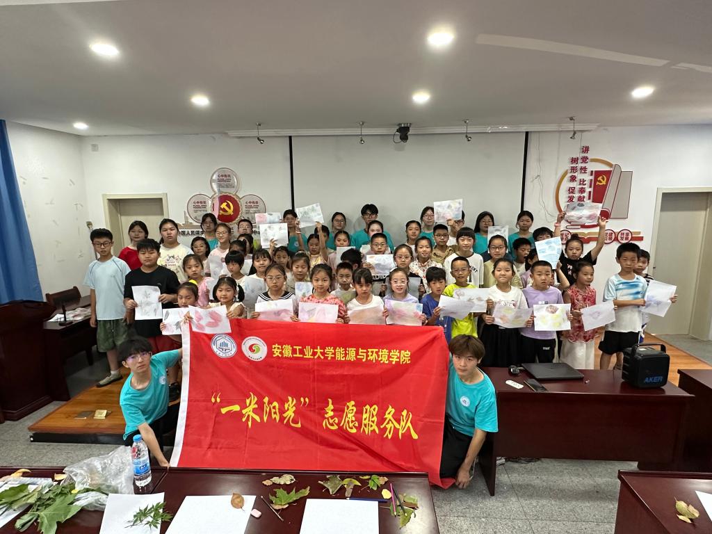 “一米阳光”暑期社会实践队走进佳山社区,为30余名学生带来“保护绿色植物,拓印绿色树叶”的环保创作活动,寓教于乐,在孩子们心中种下环保的种子。