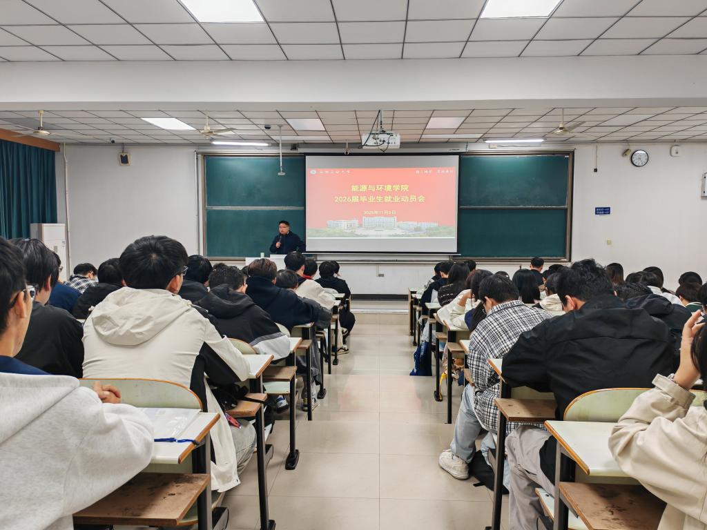 于11月5日在教三南303召开2026届毕业生就业动员会。会议由毕业班辅导员沈厚发主持,院党委副书记、副院长卫军帅参加会议并作动员讲话。