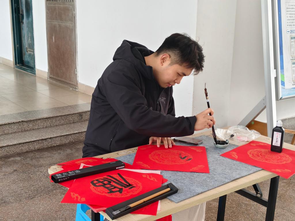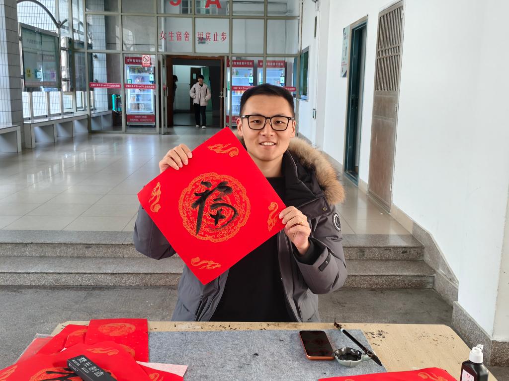 辅导员老师与学生代表共同执笔,红纸铺展,挥毫泼墨,一笔一划认真书写着新春的“福”字和寓意吉祥的对联。现场吸引了众多师生驻足观看、积极参与。一个个苍劲有力或娟秀清新的“福”字,一幅幅承载着美好祝愿的春联,在师生手中传递,不仅送出了真挚的新春祝福,更传递了炸金花App