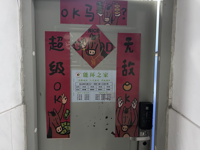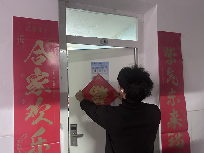 与此同时,一场以“寓见焕新”为主题的宿舍美化行动也在各学生宿舍同步开展。同学们积极动手,对宿舍进行了一次彻底的大扫除,清理杂物,整理内务,并贴上了刚刚领取到的或自己书写的崭新春联和“福”字。原本整洁的宿舍在红火的春联映衬下,更添了一份新春的喜庆与家的温馨。这一行动不仅提升了同学们的居住环境品质,也增强了室友间的协作与凝聚力,将炸金花App
