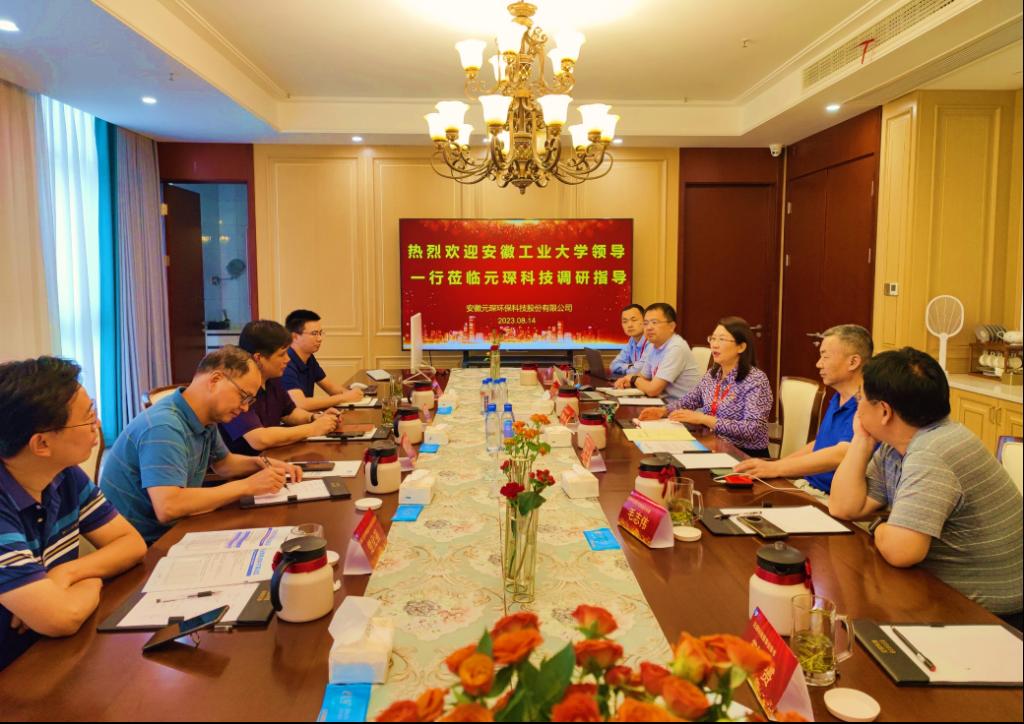 一行5人在院党委书记谢文平、院长钱付平的率领下赴合肥安徽元琛环保科技股份有限公司开展校企产学研合作交流。公司董事长徐辉、总经理梁燕等热情接待了谢文平一行并开展座谈交流。