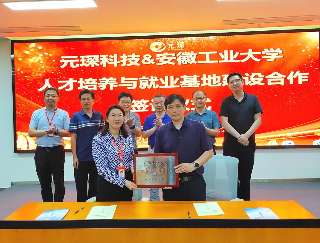 大学生就业基地”揭牌。谢文平和公司董事长徐辉等共同见证了签字和挂牌仪式。