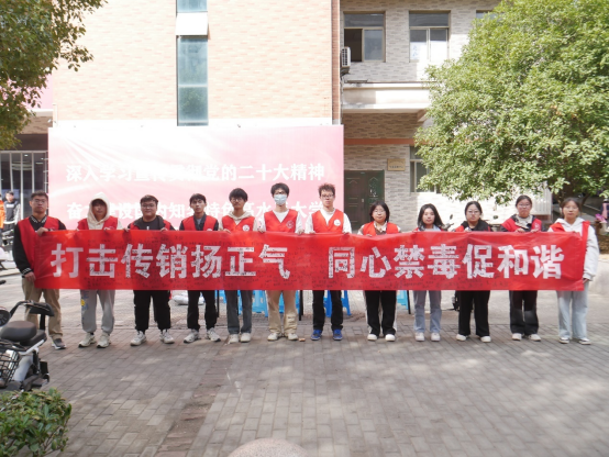 志愿者们提前准备物资、布置好活动场地,轮流值班,同时引导同学们在横幅上签字。在此期间,志愿者们积极宣传关于传销案例以及新型毒品类型,号召同学们抵制毒品、拒绝传销,宣传正确的价值观和人生观。