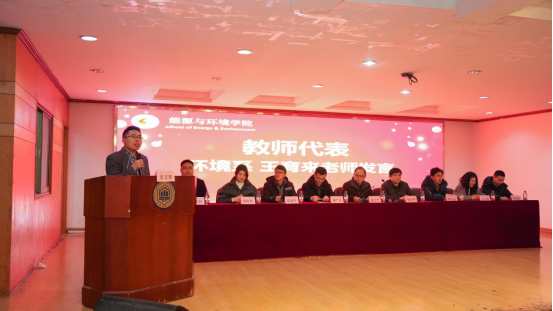 校先进班集体代表、能源与动力工程212班的查旭东同学就如何建设先进班集体、班级的管理制度建设、所取得的工作成效及对未来的展望发表了自己的见解。先进个人代表、环境工程201班保研湖南大学的宋慈同学上台分享了自己三年的学习成长历程,综合成绩第一、科创竞赛夺佳绩、社会实践展担当,用实际行动践行“有志者事竟成”。安徽省科技进步一等奖获得者、优秀教师代表环境系王育来老师总结了这一学年来所取得的成绩,展望了炸金花App
