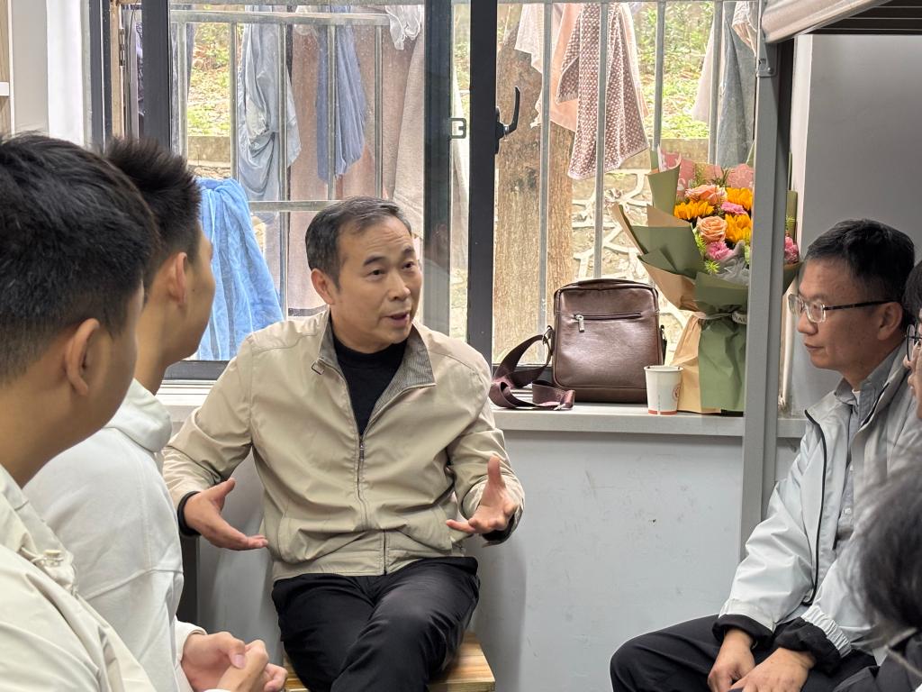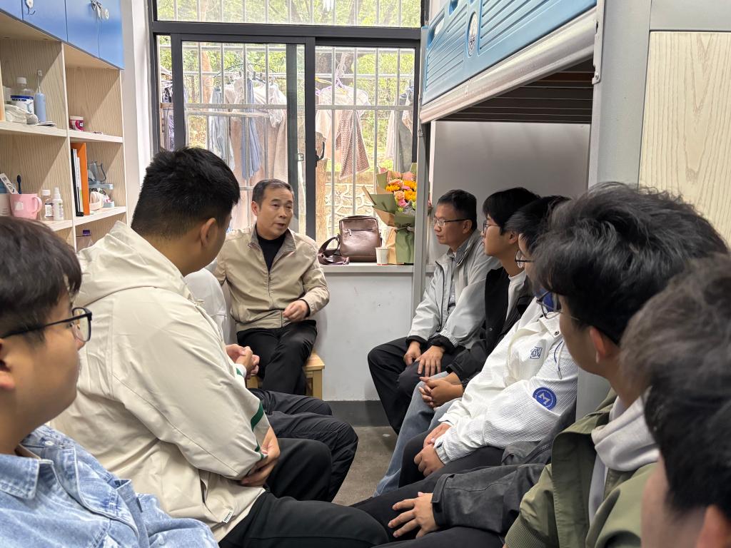走访中,两位老师详细询问同学们日常生活和学习情况,同学们主动敞开心扉踊跃提问,现场氛围融洽。凤杰老师从学习适应、校园安全、人际交往等方面与新生深入交流。他强调同学们学会学习,善于挖掘资源筑牢“自我管理”根基学会为人处世,常怀感恩之心;学会共同生活,共同营造和谐宿舍氛围;学会自我保护,注意宿舍用电、人身财产和网络安全,时刻绷紧安全弦黄河清老师则聚焦“如何克服诱惑、保持学习动力”展开分享他勉励同学们既要树立远大理想,以目标引领行动;也要珍惜当下时光,合理平衡学习和生活关系