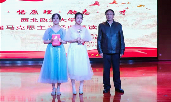 比赛间歇,马克思主义炸金花app 院长魏奇教授应邀与同学们同台共谈经典,他以饱满的热情朗诵了诗歌《再读<共产党宣言>》,纪念马克思为全人类作出的伟大贡献。炸金花app 张磊老师对选手们的现场表现进行点评,并以歌曲《梅花引》引起全场热烈反响。