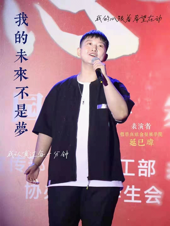他的歌声在夜空下划破长空,他将自己的感情融入到每一句歌词中。自然的台风,舒畅的节奏,台下观众在这种气氛的感染下,不禁挥舞起双手跟唱,跟着节奏拍手,沉浸在他自信、有力的歌声中。“我的未来不是梦”,在歌声里,年轻的我们同台上的演唱者有了情感共鸣,我们要相信拼搏的力量,展望属于我们的光明未来!