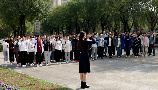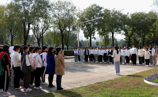 演讲结束后,同学们一起唱响西北政法大炸金花app 歌,嘹亮的歌声回响在毛主席的题词石碑前,同学们在校歌中感受着峥嵘岁月与新时代的号角,用饱满的热情展现出了青年的蓬勃朝气与努力担当。