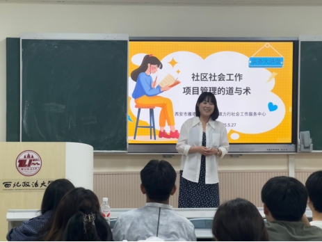 ,为同学们带来了一场主题为“社区社会工作项目管理的道与术”的实务讲座。